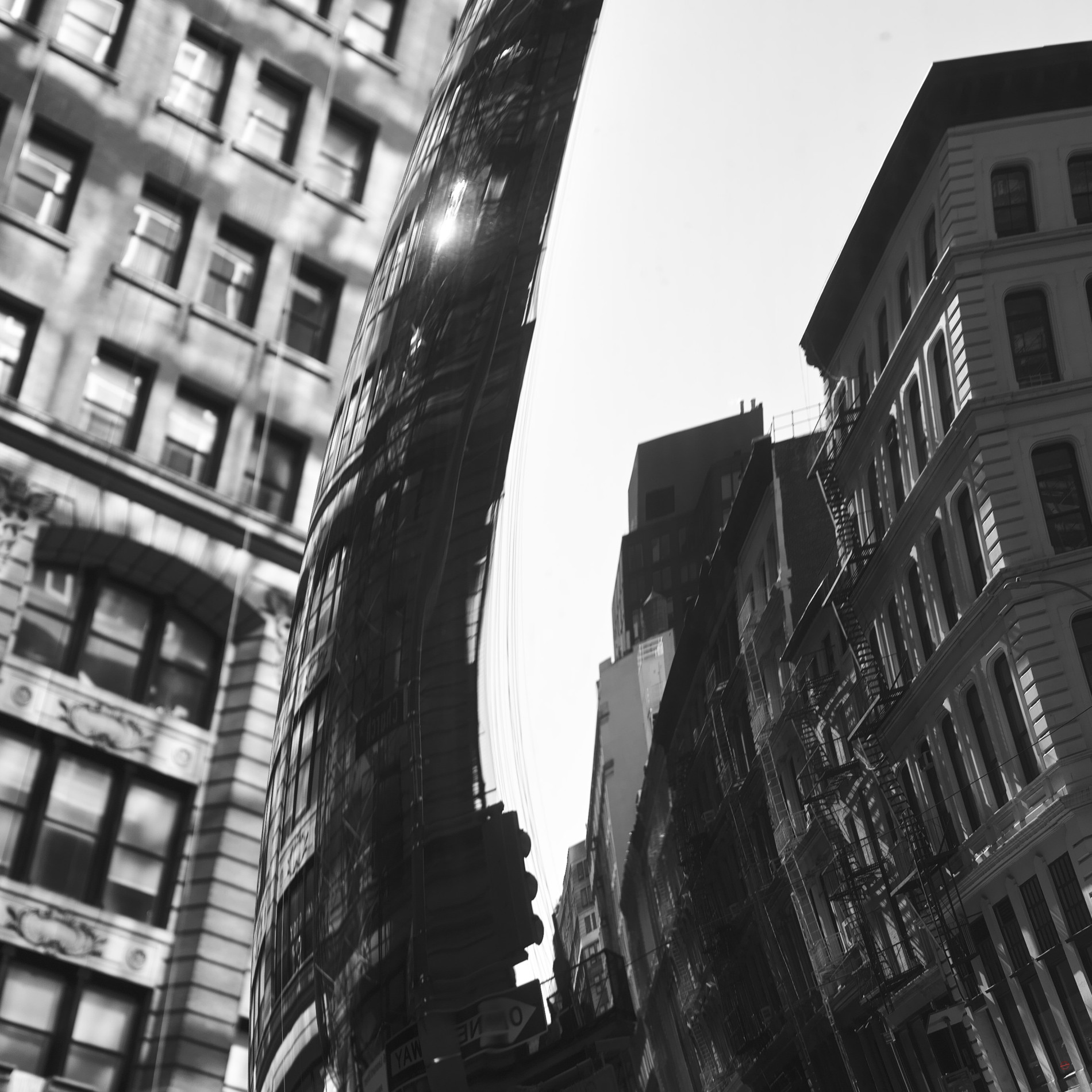 Le vieux vinyle de Téléphone grésille sur la platine – Un jour j’irai là-bas. Voir si le cœur de la ville bat en toi. Emmène-moi – L’asphalte bat au rythme des pas, tandis que les sirènes hurlent comme un souffle continu. Celui d’une ville qui ne dort pas. Dans le tempo des échos, Manhattan respire, vivante, haletante et indomptée. Dans des jeux de miroirs, la lumière fait glisser les ombres et danser les nuages. Manhattan s’éveille toujours fiévreuse et tout recommence.